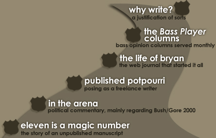 From web journaling to attempts at novels to columns in nationally published magazines, the art of literature and I have been both intimately and intermittently familiar for years. I wouldn't call it a relationship, but more of a friendship with benefits. Perhaps in my next life we'll go all the way. Until then, the totality of my written works lie before you.
