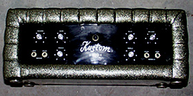 I was in Daddy's Junky Music back in 1991, just about to buy a Mesa-Boogie 15" Speaker Cabinet, when I saw this less-than-pristine example of tuck-and-roll handiwork at its finest. I asked how much? Fifty bucks, the man said. I turned it on and it worked, but the huge, blue, jeweled power LED wouldn't illuminate. I told the man that if he fixed the blue light, I'd buy both the Kustom head and the Boogie cab. He did. I did. It worked for about a year as a practice amp, and then kablooey. I still brought it to L.A. with me, and had it "fixed" at The Bass Center (R.I.P.). I put "fixed" in quotes, because when I plugged it in, it worked but only if you wanted some mean, grinding distortion along with your bass sound. You couldn't dial it out. I thought for sure that it would eventually die again, because no solid-state amp was supposed to do that and live for long, but it just kept working. For fun, I brought it into a Z Music For Pets session in mid-1994. Dweezil loved the sound of it so much that he had us record "Feminine SDH" immediately, live-to-two-track. That recording was eventually overdubbed upon by other guitars and vocals and became the version on the record. I didn't play it for a while after that. Sure enough, several years later I plugged it in to see how much I liked that distorted sound compared to the SWR Interstellar Overdrive and it wasnt distorted at all. It had somehow "fixed" itself. All that remained was a mediocre, tubby, clean bass sound. I still have the head--who the hell would want it?--mainly just to look at, laugh, and remember that it sounded pretty good for no good reason for about a year. |