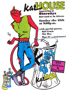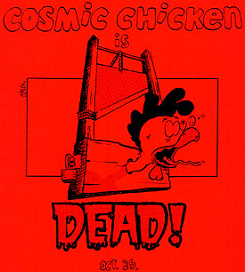 #2: The Revenge Of The Cosmic Chicken, 3/13/91 I badly wanted Joe Travers on drums for this show, but when I approached him with the invitation.he declined, due to scheduling conflicts with other shows he'd booked. My ego was understandably bruised, but I took our now-good name, made better posters, and got another drummer named Frank Lombardi, a popular, outgoing, extremely positive guy who'd just placed second in a local Best Drummer contest. (He would have won it if he hadn't gotten drunk before he got called back up for a "drum-off" with the eventual winner.) I was