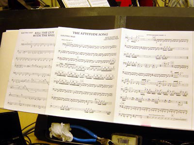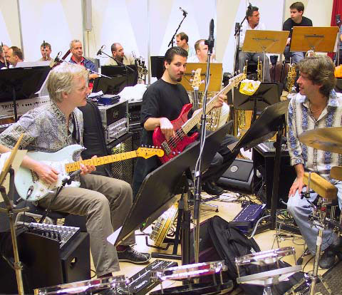 But back to the gig. Steve showed up in the second week, and we all went through a short adjustment period while the carefully balanced execution of the orchestra mated with Steve's signature screaming guitar tone. Lots of changes were made to the scores on the fly, and there seemed to be a constant committee meeting going on between Steve Vai, Dick Bakker, orchestrators Tom Trapp and Chris Opperman, and Co de Kloet. Section by sectionwoodwinds, brass, strings, percussionhad their moment of analysis. It was pretty incredible to watch.