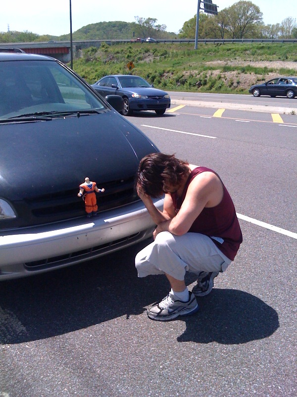 We discovered Skozzo's demise shortly after we made it to a safe haven on the side of the road. A search party was quickly dispatched along the side of I-40 to try and locate the head of our fallen fighter, but alas, it was not to be. Skozzo's mighty bust had gone to the heavens, resting peacefully in the Valhalla of the Victorious Road Warriors. I mourned his passing, overcome with emotion on the side of the road.